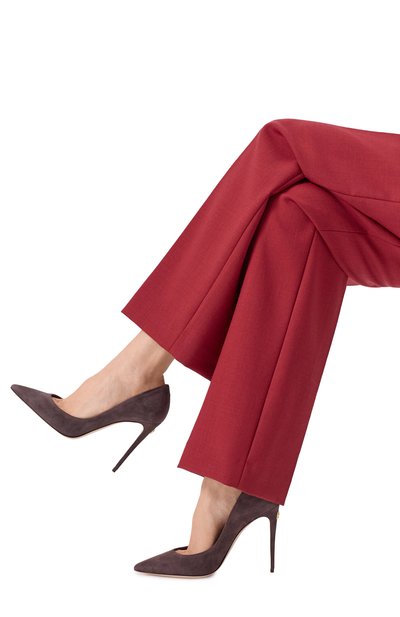 Туфли Bella с внутренней отделкой из гладкой наппы выполнили из мягкой замши. Модель с зауженным мысом установили на невысокий тонкий каблук.