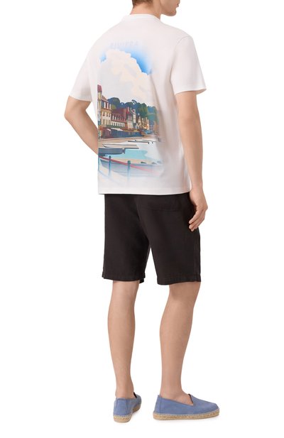 Футболку с двойным кантом на горловине выполнили из джерси X-Soft на основе лиоцелла и хлопка. Модель с короткими боковыми разрезами украсили фирменным силуэтом акульего плавника на спинке.