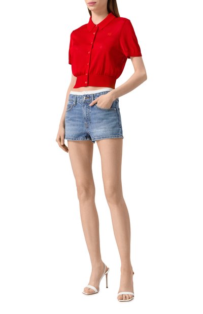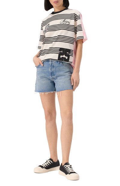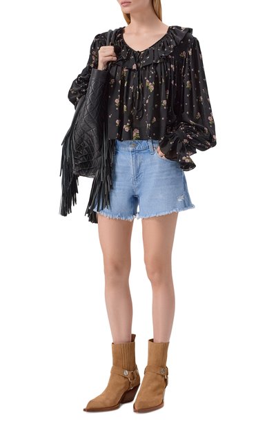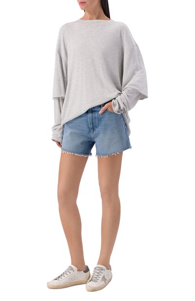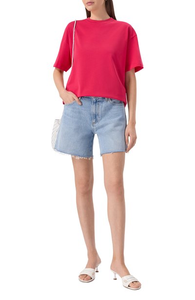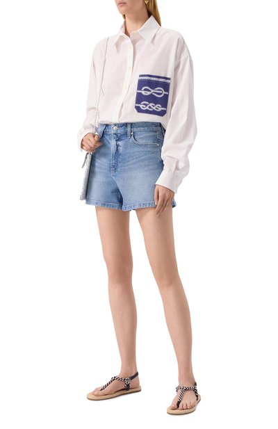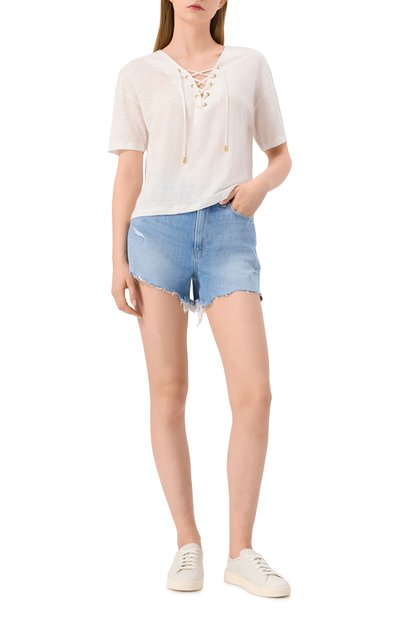 Джинсовые шорты Sienna с высокой посадкой сшиты из хлопкового денима с потертостями. Модель с необработанными краями и пятью карманами легко впишется в повседневный гардероб.