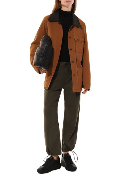 Джоггеры Trakpant Black Cheetah с заниженной линией шагового шва и потайной кулиской на поясе выполнили из хлопкового трикотажа. Модель с леопардовым принтом из коллаборации с Mowalola дополнили двумя боковыми карманами.