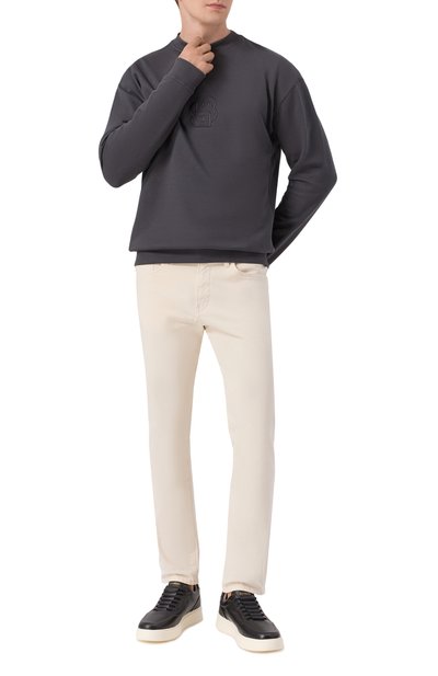 Кеды Rider из телячьей кожи декорировали небольшими потертостями, поддержав их состаренными подошвой и шнуровкой. О принадлежности пары марке напомнили логотипом на язычке, а задник украсили именами братьев Кейтенов и годом их рождения.