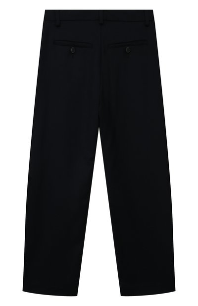 Брюки со складками и боковыми карманами выполнили из эластичной костюмной ткани с добавлением вискозы. Модель, застегивающаяся потайной молнией и металлической пуговицей, может стать основой школьного образа.