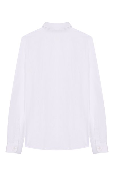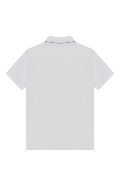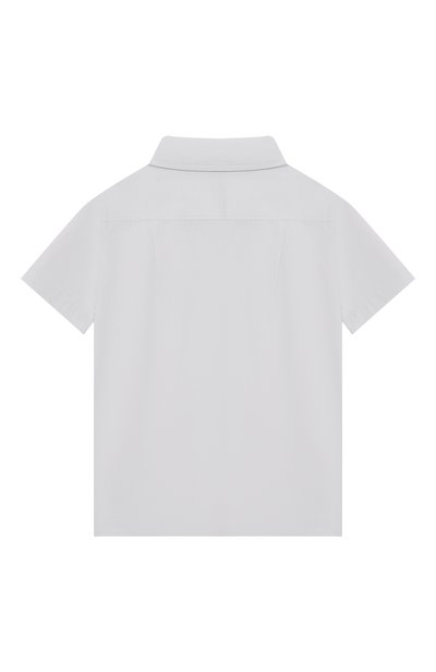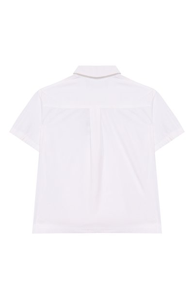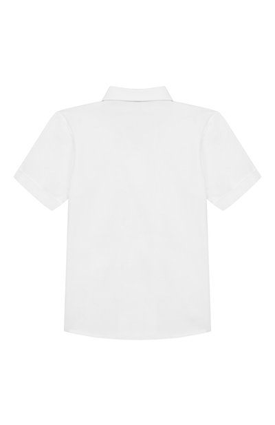 Рубашку с отворотами на коротких рукавах, складкой на спинке и фигурным низом выполнили из хлопка. Модель подойдет для создания школьного образа.