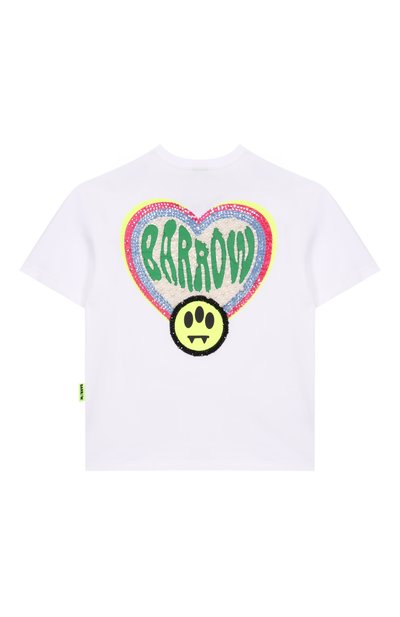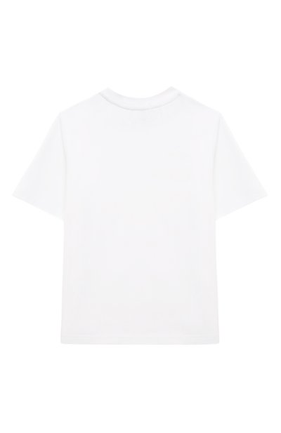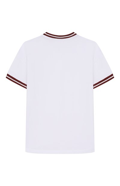 Футболку прямого кроя выполнили из хлопкового джерси стрейч. Манжеты и круглую горловину подчеркнули кантом с контрастными полосками, в тон которым – вышитая спереди монограмма EB.