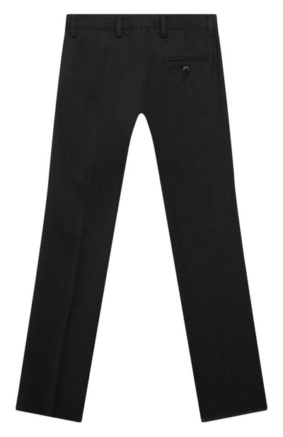 Брюки с отворотами и боковыми карманами органично впишутся в школьный гардероб. Для изготовления модели со стрелками и эластичным поясом-кулиской использовали костюмную ткань стрейч на основе шерсти.