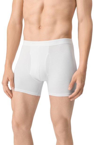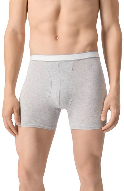 Для изготовления боксеров Ethan использовали тонкое стрейчевое джерси на основе терморегулирующего микромодала. Модель с полосатым п оясом-резинкой дополнили гульфиком без застежки.