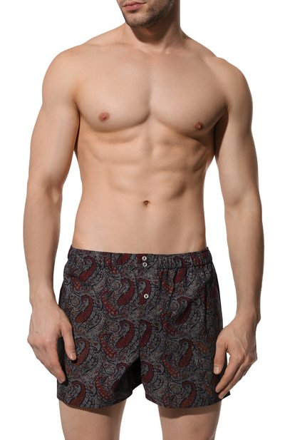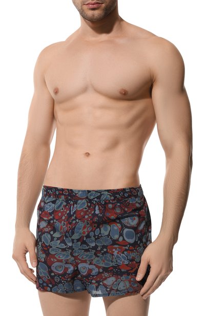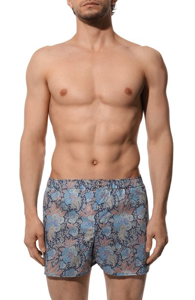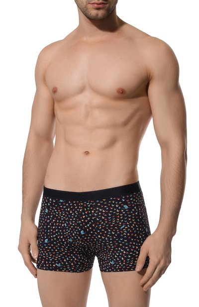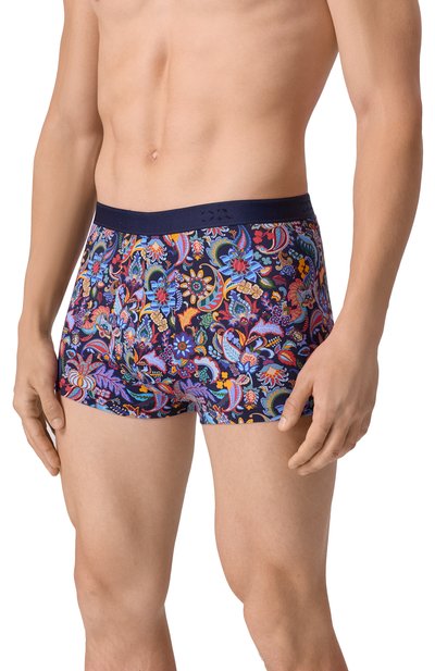 Для пошива боксеров с небольшими боковыми разрезами использовали хлопковый батист с принтом Midnight Jungle. Модель дополнили эластичным поясом.