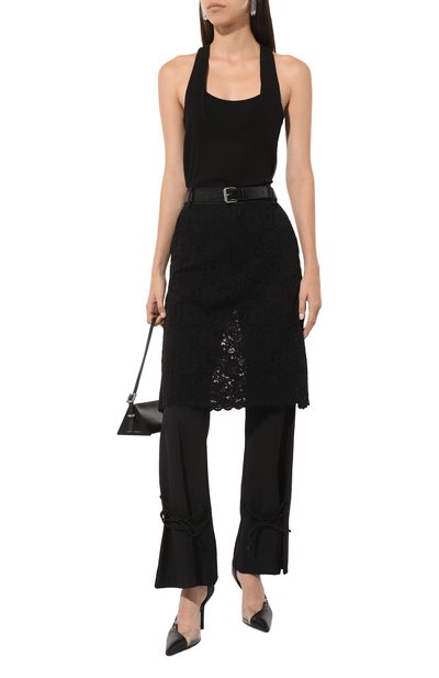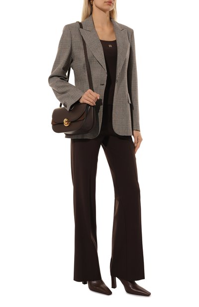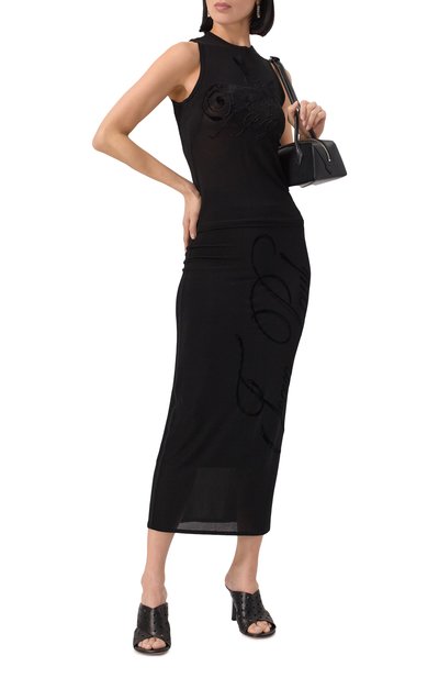 Топ свободного кроя выполнен из гладкого микса ацетата и шелка. Модель украшена эмблемой марки сзади, а круглый вырез отделан трикотажным кантом с люрексом