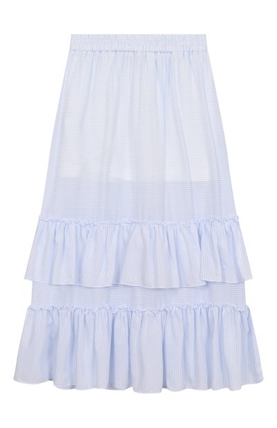 Юбку Celfie с широкой оборкой на низе выполнили из сетчатого тюля. Модель с хлопковым подкладом и плотным поясом застегивается пуговицами сзади.
