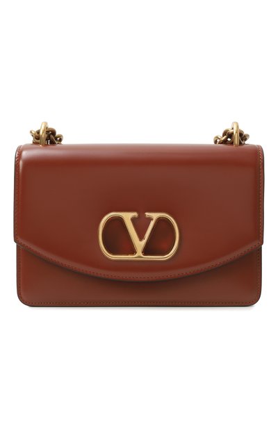 Сумку Vain со скользящим плечевым ремнем-цепочкой украсили металлической эмблемой VLogo Signature на клапане. Два отделения аксессуара, созданного из телячьей кожи, дополнили парой карманов.