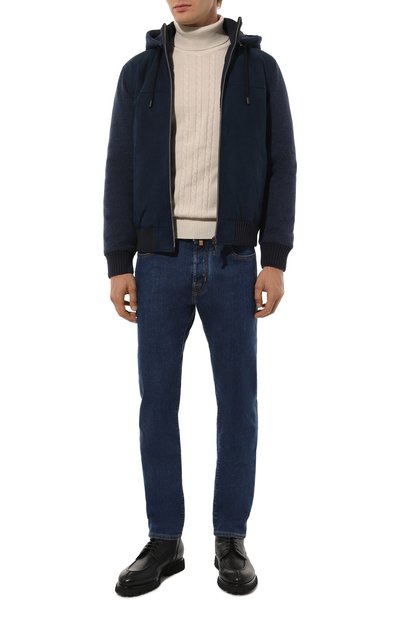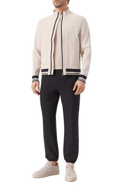 Бомбер Johice с манжетами, поясом и воротником-стойкой из трикотажа в рубчик выполнили из сертифицированной козьей замши. Куртка с рельефным логотипом на спинке и боковые карманы застегиваются молниями с отделкой из гл адкой овечьей кожи.