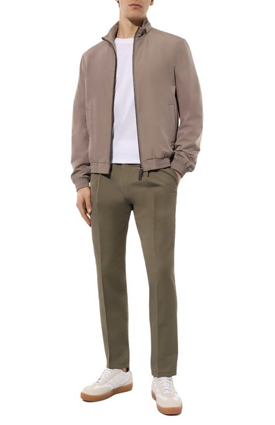Бомбер Johice с манжетами, поясом и воротником-стойкой из трикотажа в рубчик выполнили из сертифицированной козьей замши. Куртка с рельефным логотипом на спинке и боковые карманы застегиваются молниями с отделкой из гладкой овечьей кожи.