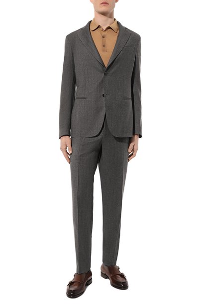 Однобортный пиджак Arti с широкими лацканами и двумя шлицами сшит из эластичного микса шерсти и хлопка с шевронным узором. Приталенная модель дополнена внутренними и парой внешних карманов.