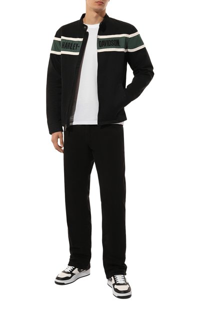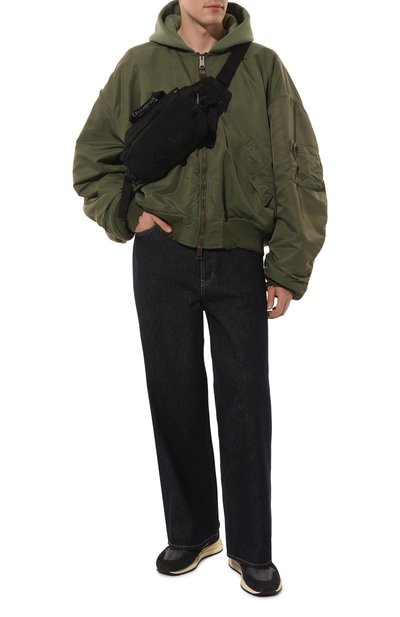 Джинсы Mason украсили фирменным жакроном на поясе, а также брендированным ярлыком и вышитым узором на монетном и заднем карманах. Широкие брюки с заниженной линией шагового шва выполнили из жесткого денима.