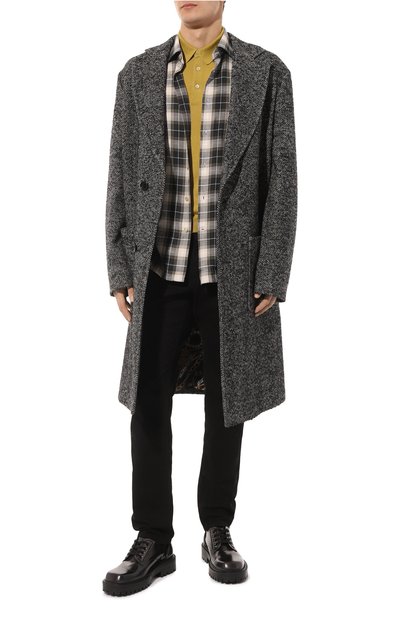 Рубашку с фигурным низом и скошенными манжетами выполнили из хлопкового поплина в контрастную клетку. Модель силуэта Slim fit застегивается перламутровыми пуговицами.