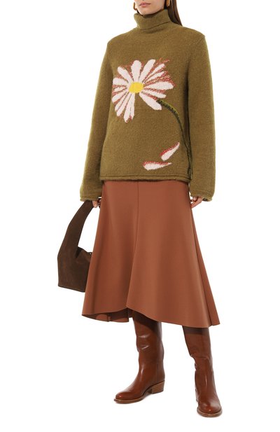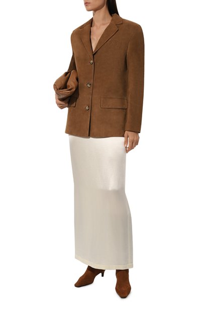 Сапоги Georgia на выступающей кожаной подошве, каблук которой дополнили резиновой накладкой, выполнили из замши. Модель с широким голенищем обходится без застежки.