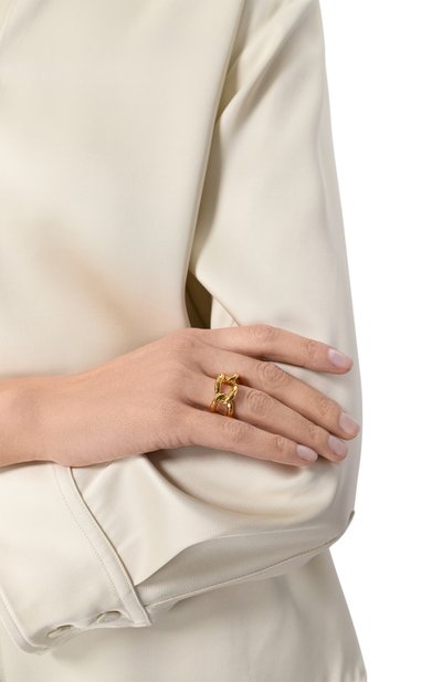 Крупное кольцо с выгравированным логотипом на шинке изготовили из латуни. Аксессуар с накладкой в форме пера украсили цирконами и имитацией жемчуга.
