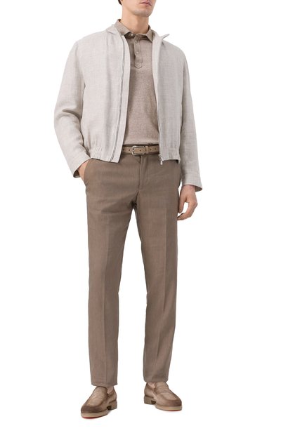 Поло выполнили из шерстяного трикотажа. Модель с рифлеными вставками на плечах и рукавах застегивается тремя перламутровыми пуговицами на короткой планке.