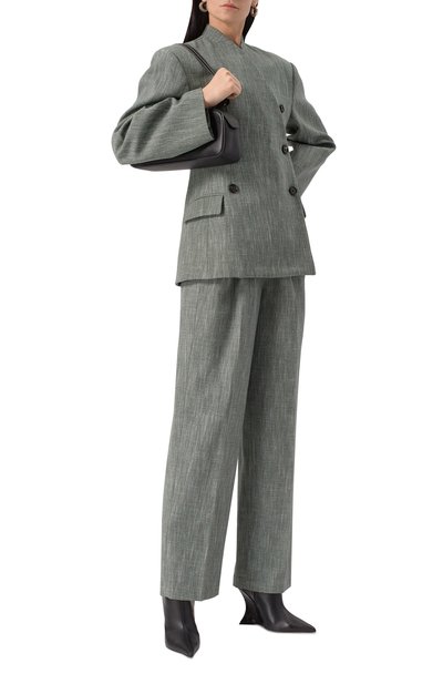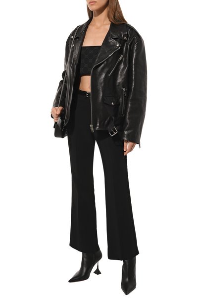 Ботильоны Belle с удлиненным квадратным мысом выполнили из мелкозернистой кожи. Модель с облегающим голенищем без застежки поставили на высокий каблук.