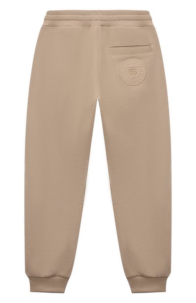 Джоггеры из хлопкового футера дополнили боковыми и прорезным карманом сзади. Спереди модель украсили геральдической вышивкой с монограммой DG в тон.