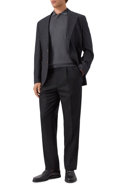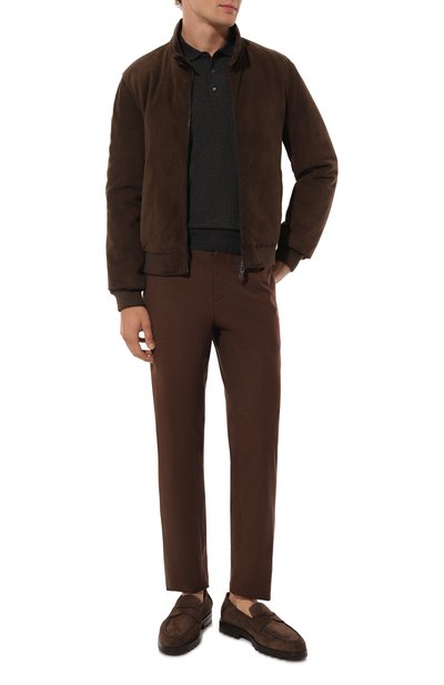 Поло из хлопкового джерси застегивается двумя перламутровыми пуговицами в тон. Оттенок контрастного воротника поддержали небольшой эмблемой Solomeo.