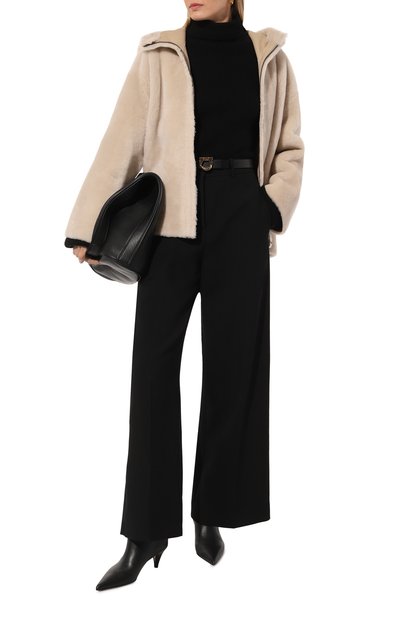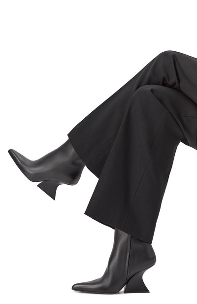 Ботильоны со скошенным квадратным мысом сшиты вручную из гладкой кожи. Модель, застегивающаяся сбоку молнией, дополнена фигурным каблуком kiten heel.