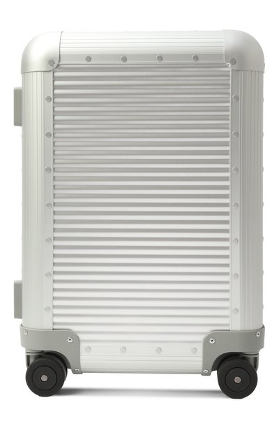Чемодан Bank Spinner с алюминиевым корпусом толщиной 10 микрон дополнили четырьмя маневренными колесами, короткой и телескопической ручками. Аксессуар с кожаными прижимными ремнями, замками-бабочками и кодовым замком TSA весит 7,4 кг.