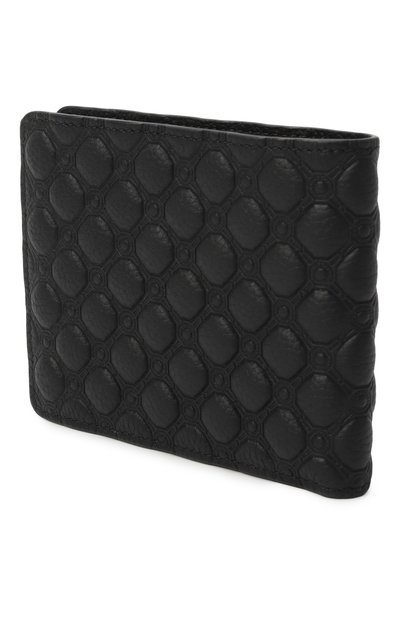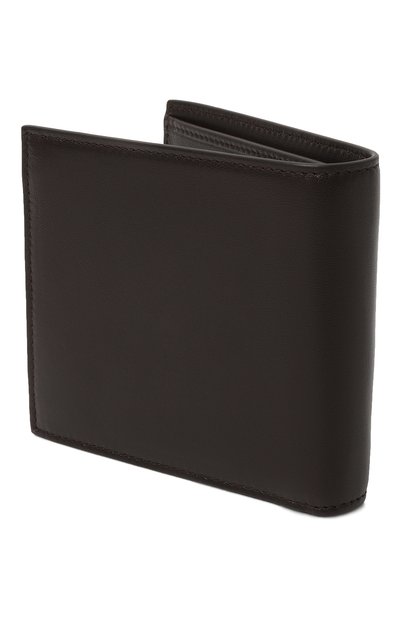 Портмоне из зернистой телячьей кожи украсили монохромным принтом Majolica и фирменной брендированной пластиной. Внутри аксессуара двойного сложения предусмотрели отделение для купюр, три карточных слота, карман для монет и два отсека для чеков.