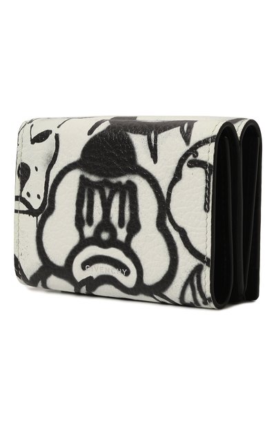 Портмоне из зернистой телячьей кожи украсили монохромным принтом Majolica и фирменной брендированной пластиной. Внутри аксессуара двойного сложения предусмотрели отделение для купюр, три карточных слота, карман для монет и два отсе ка для чеков.