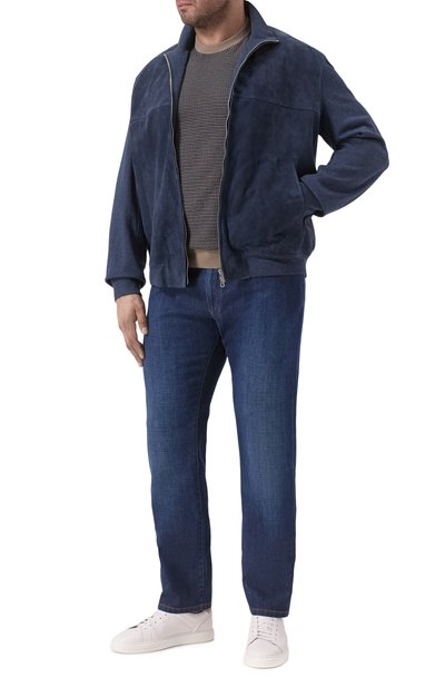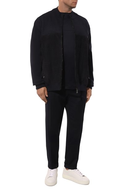 Кардиган Triple stitching выполнили из микса шелка и хлопка, а полочки — из тонко выделанной вручную замши. Модель с отделкой в рубчик и боковыми карманами застегивается встречной молнией.