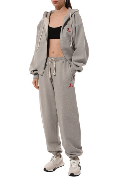 Джоггеры свободного кроя выполнили из хлопкового трикотажа. Модель с поясом-кулиской и боковыми карманами декорировали спереди логотипом марки.