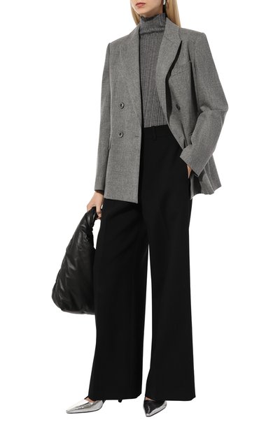 Водолазка с высоким воротником выполнена из трикотажа на основе кашемира, шерсти и шелка. Модель в рубчик удачно впишется в повседневный гардероб.