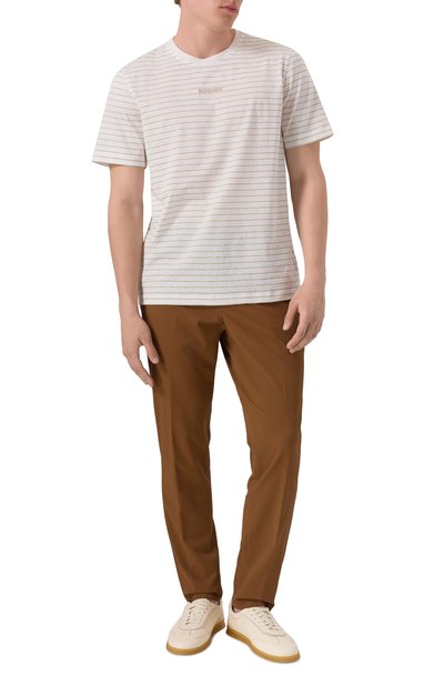 Брюки Phil с четырьмя врезными карманами и защипами сшиты из микса полиэстера, шерсти и вискозы. Пояс со шлевками для ремня дополнен эластичной вставкой.