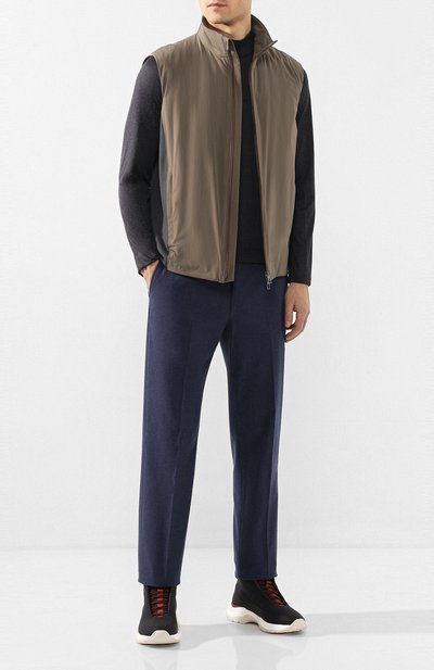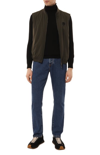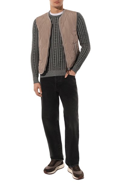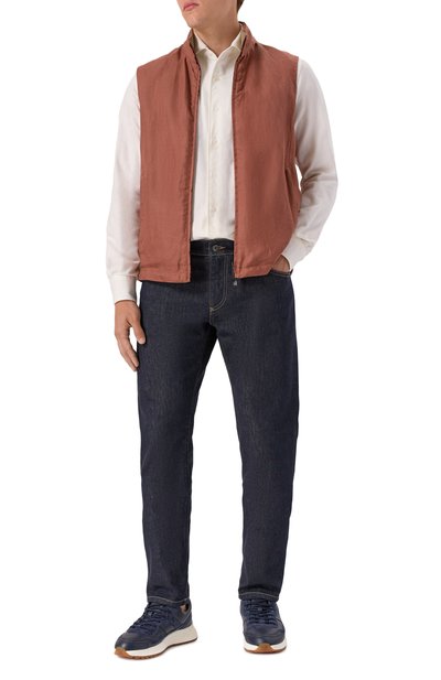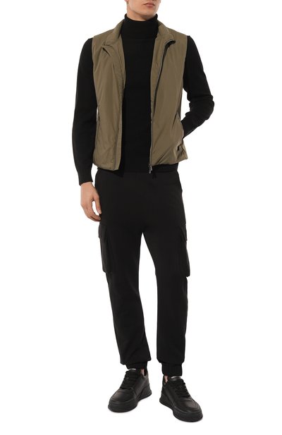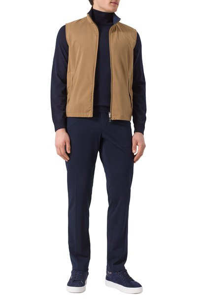 Стеганый жилет на синтетическом утеплителе выполнили из полиэстера. Модель с воротником-стойкой на кнопках и застежкой-молнией дополнили боковыми карманами.