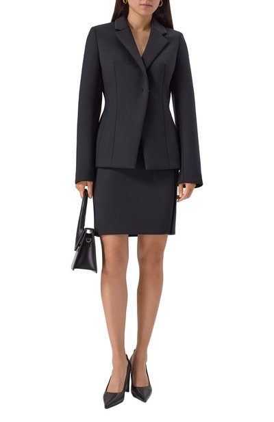 Мини-юбку А-силуэта можно носить соло или создать многослойный образ с парными брюками. Модель из шерстяного габардина стрейч застегивается потайной молнией сзади.