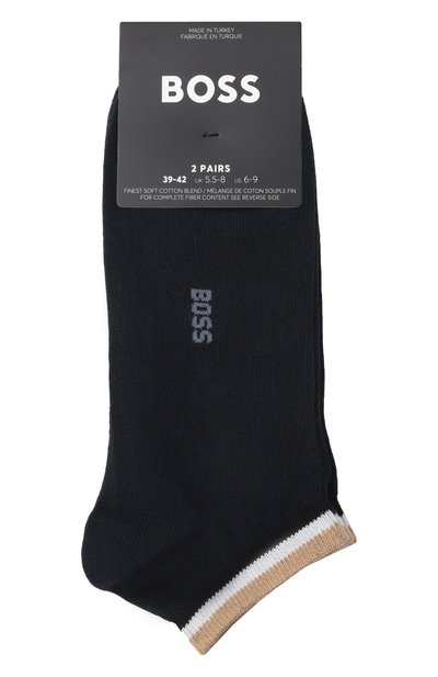 Низкие носки с укрепленными пяткой и мысом выполнили из хлопковой пряжи с добавлением полиамида и эластана. В комплекте — еще одна пара с резинкой в цветах фирменного триколора.