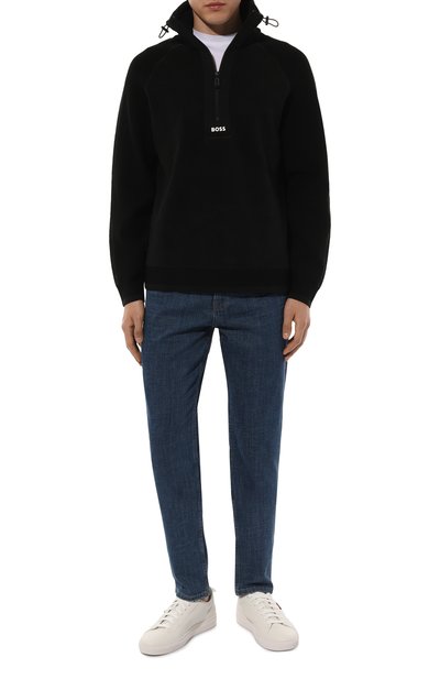 Свитшот Stimmann с воротником-стойкой выполнен из хлопкового пике. Изделие с миниатюрным фирменным ярлыком сбоку застегивается короткой молнией с брендированным пуллером.