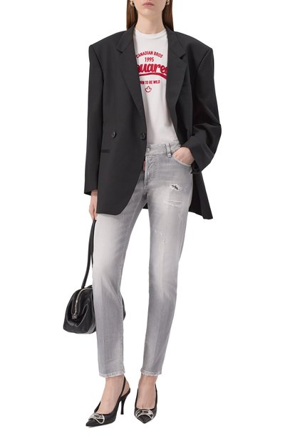 Джинсы The Mid Rise Rider Skimp со средней посадкой выполнили из эластичного хлопкового денима с добавлением полиэстера и лиоцелла. Два из пяти карманов украсили вышитыми эмблемами марки.
