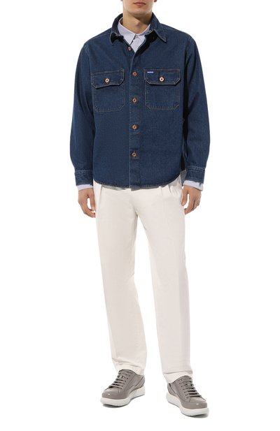 Кроссовки выполнили из эластичного трикотажа и замши. Модель с брендированной петлей на заднике установили на гибкую протекторную подошву с логотипом на пятке.