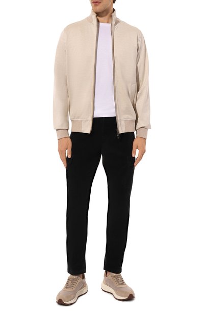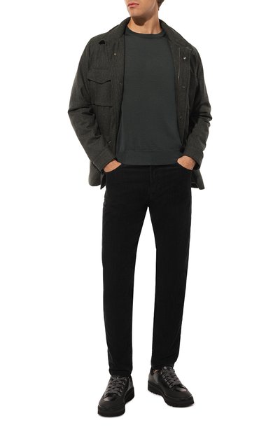 Брюки прямого кроя выполнили из хлопкового вельвета, усиленного полиэстером. Модель с боковыми и задними карманами дополнили на поясе регулируемой кулиской с брендированным шнуром.