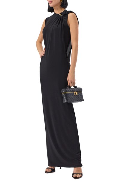 Платье без рукавов. Обхват груди 103 см, обхват талии 101 см, обхват бёдер 101 см, длина изделия по спинке 84 см.