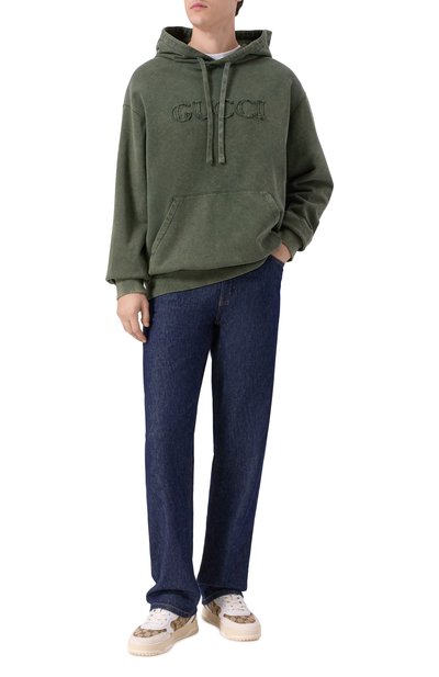 Oversize-худи с рукавами реглан выполнили из кашемирового трикотажа с добавлением шерсти. Модель с карманом «кенгуру» составит комфортный образ с парными брюками.