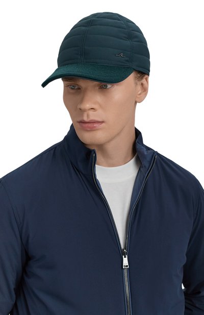 Стеганую бейсболку с изогнутым козырьком, обтянутым шерстью первого пострига, выполнили из ткани Typhoon® Platinum. Аксессуар с фирменной деталью Shark fin регулируется ремешком с пряжкой.