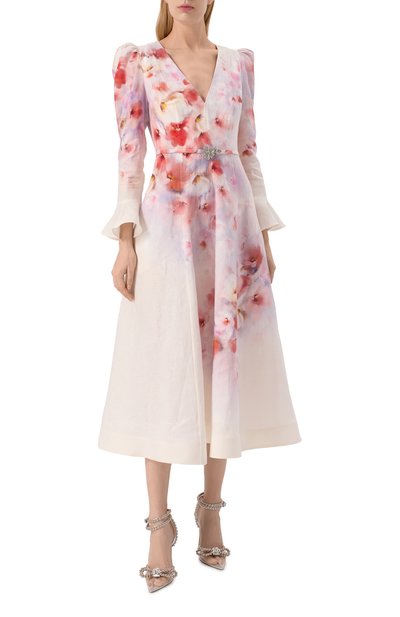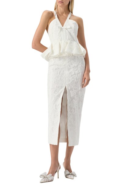 Туфли Double Bow с фигурной шпилькой и кожаным подкладом сшили из атласа. Модель дополнили кристальной пряжкой-цветком, а также двойным бантом и отделкой из шнура со стразами.