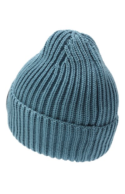 Яркую шапку бини украсили фирменными линзами Goggle на широком отвороте. Аксессуар связали английской резинкой из шерсти мериноса.