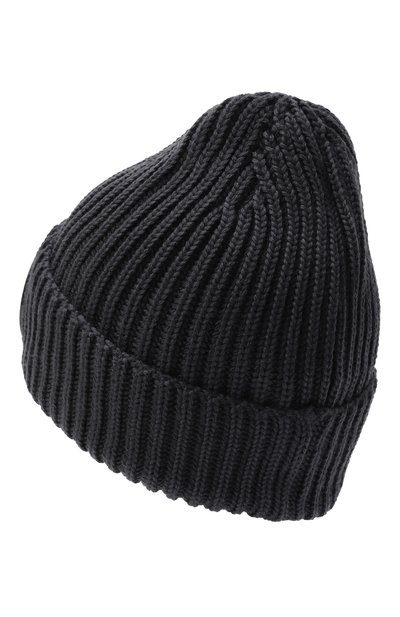 Шапку бини связали узором в рубчик из мериносовой шерсти. На широком отвороте аксессуар декорировали фирменными глянцевыми линзами Goggle.