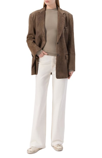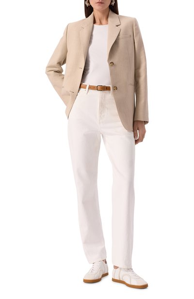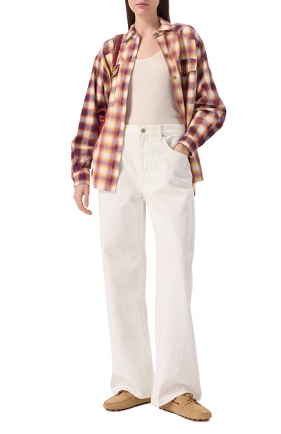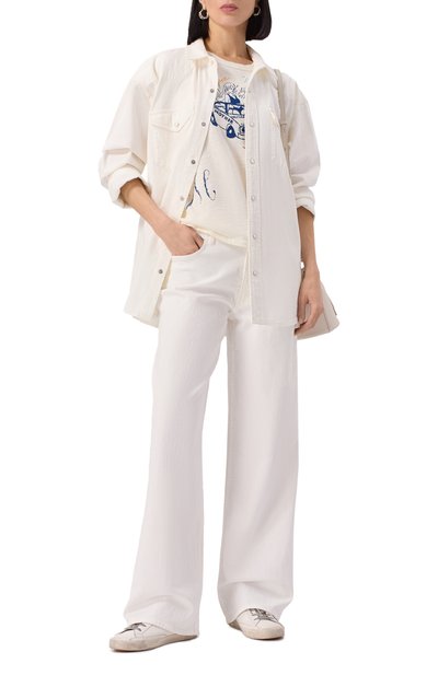 Для изготовления джинсов из коллаборации с командой Sotheby's использовали жесткий деним. Самый маленький из пяти карманов модели украсили контрастным вышитым логотипом аукцион ного дома.