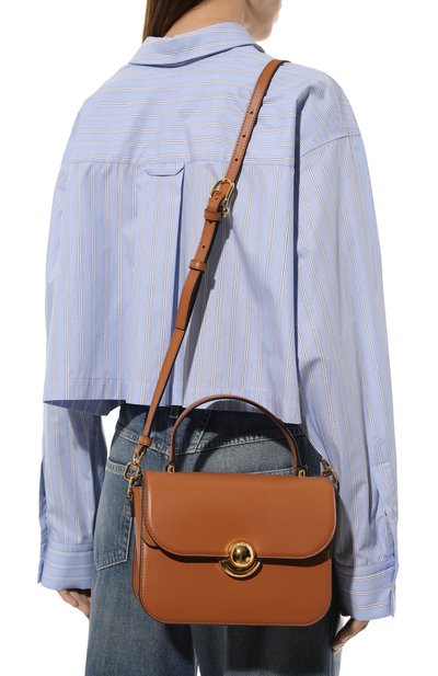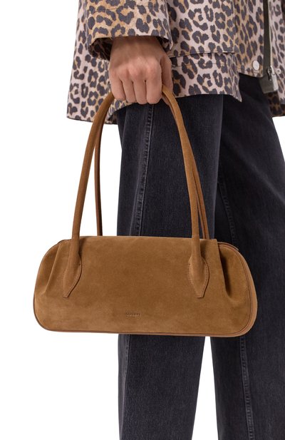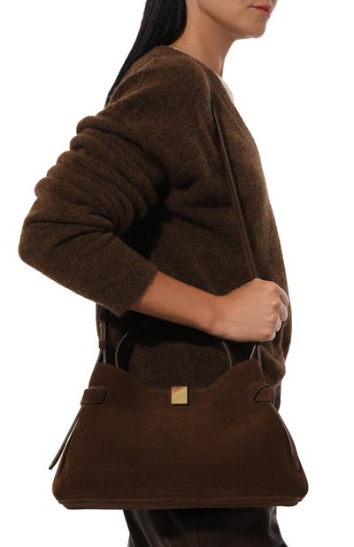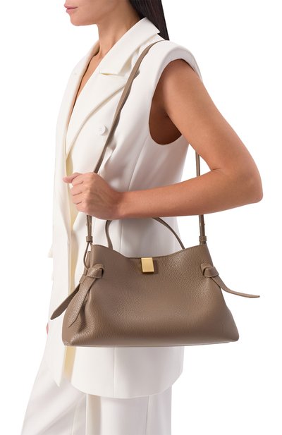 Сумка Brioche с двумя длинными ручками застегивается встречной молнией. Аксессуар с узлами по бокам выполнили из крупнозернистой бычьей кожи.
