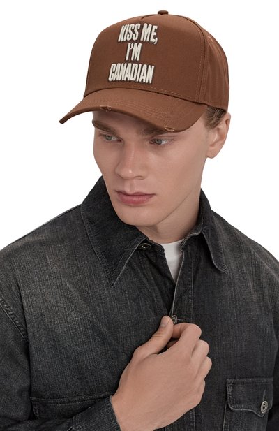 Бейсболку из хлопкового габардина декорировали акцентным брендированным патчем с канадским пейзажем. Сзади над регулируемым ремешком вышили надпись It's a Canadian Tradition, а козырек подчеркнули потертостями по краю.