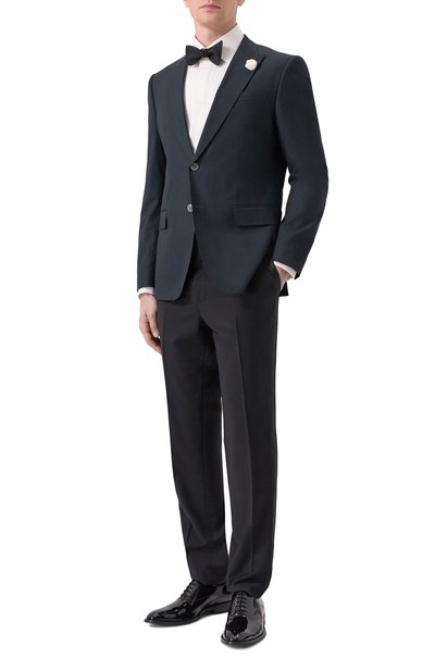 Для создания аксессуара конструкции seven fold выбрали шелковый жаккард с деликатным блеском. Широкий галстук в контрастный горох станет акцентной деталью в формальном образе.